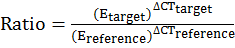 (ΔCT Reference= CT Control – CT Treatment, ΔCT Target= Ct Control– Ct Treatment)